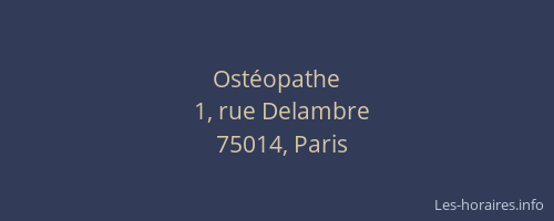 Voici les horaires de Ostéopathe situé à Paris 14ème,