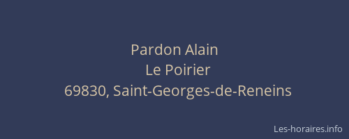 Voici les horaires de Pardon Alain situé à Saint-Georges-de-Reneins,