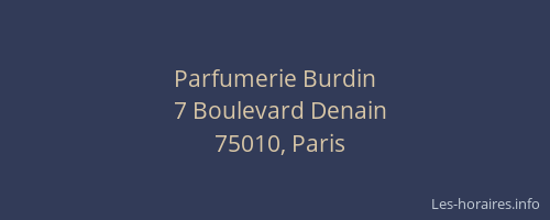 Voici les horaires de Parfumerie Burdin situé à Paris 10ème,