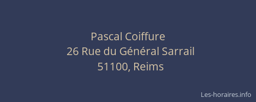 Vous pouvez renseigner les horaires Pascal Coiffure situé à Reims,