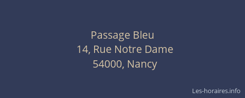 Voici les horaires de Passage Bleu situé à Nancy,