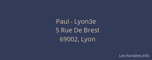Voici les horaires de Paul - 3e situé à Lyon,