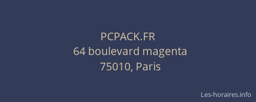 Voici les horaires de PCPACK.FR situé à Paris 10ème,
