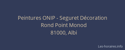 Voici les horaires de Peintures ONIP - Seguret Décoration situé à Albi,
