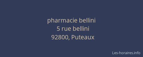 Voici les horaires de pharmacie bellini situé à Puteaux,