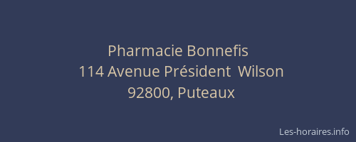 Voici les horaires de Pharmacie Bonnefis situé à Puteaux,