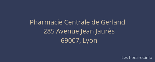 Voici les horaires de Pharmacie Centrale de Gerland situé à Lyon 7ème,