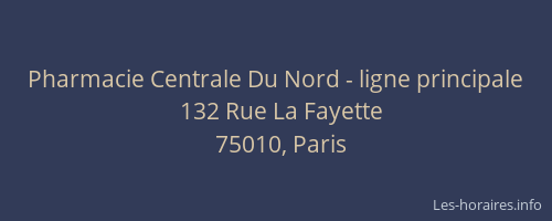 Voici les horaires de Pharmacie Centrale Du Nord - ligne principale situé à Paris 10ème,