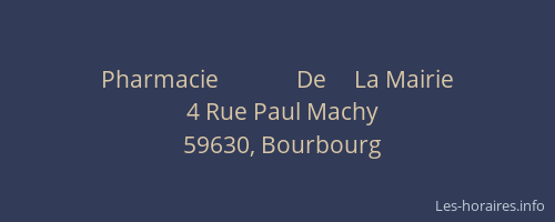 Voici les horaires de Pharmacie De La Mairie situé à Bourbourg,