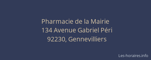 Voici les horaires de Pharmacie de la Mairie situé à Gennevilliers,