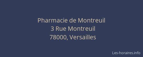 Voici les horaires de Pharmacie de Montreuil situé à Versailles,