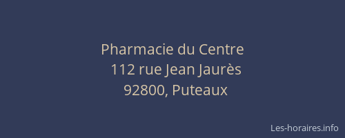 Voici les horaires de Pharmacie du Centre situé à Puteaux,