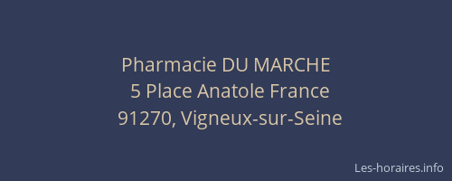 Voici les horaires de Pharmacie DU MARCHE situé à Vigneux-sur-Seine,