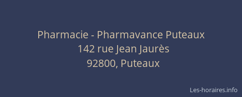 Voici les horaires de Pharmacie - Pharmavance situé à Puteaux,