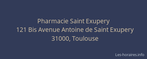 Voici les horaires de Pharmacie Saint Exupery situé à Toulouse,