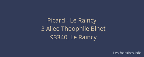 Voici les horaires de Picard - situé à Le Raincy,