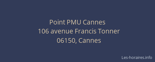 Vous pouvez renseigner les horaires Point PMU situé à Cannes,