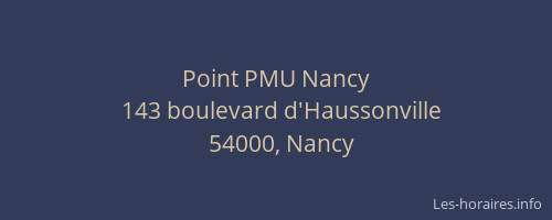 Vous pouvez renseigner les horaires Point PMU situé à Nancy,