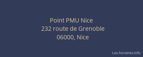 Vous pouvez renseigner les horaires Point PMU situé à Nice,