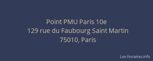 Vous pouvez renseigner les horaires Point PMU 10e situé à Paris,