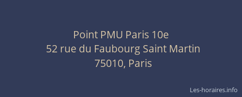 Vous pouvez renseigner les horaires Point PMU 10e situé à Paris,