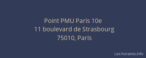 Vous pouvez renseigner les horaires Point PMU 10e situé à Paris,