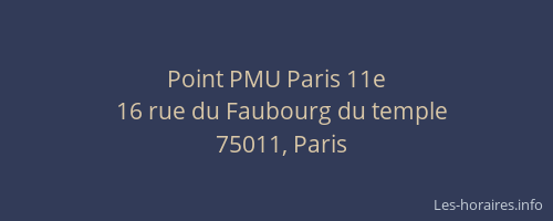 Vous pouvez renseigner les horaires Point PMU 11e situé à Paris,