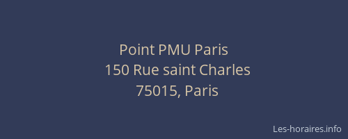 Voici les horaires de Point PMU situé à Paris 15ème,
