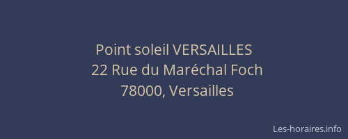 Voici les horaires de Point soleil VERSAILLES situé à Versailles,