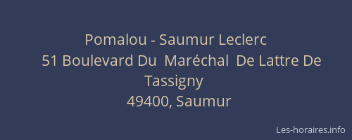 Voici les horaires de Pomalou - Leclerc situé à Saumur,
