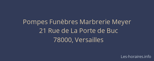 Voici les horaires de Pompes Funèbres Marbrerie Meyer situé à Versailles,