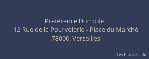 Voici les horaires de Préférence Domicile situé à Versailles,