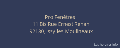 Voici les horaires de Pro Fenêtres situé à Issy-les-Moulineaux,