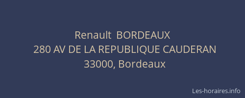 Voici les horaires de Renault BORDEAUX situé à Bordeaux,