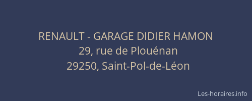 Voici les horaires de RENAULT - GARAGE DIDIER HAMON situé à Saint-Pol-de-Léon,
