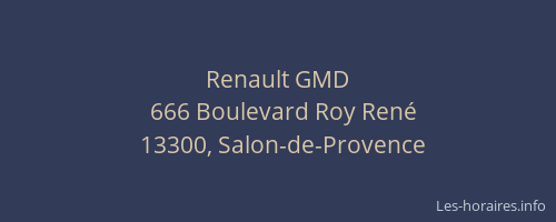 Voici les horaires de Renault GMD situé à Salon-de-Provence,