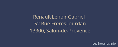 Voici les horaires de Renault Lenoir Gabriel situé à Salon-de-Provence,