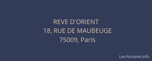 Vous pouvez renseigner les horaires REVE D'ORIENT situé à Paris 9ème,