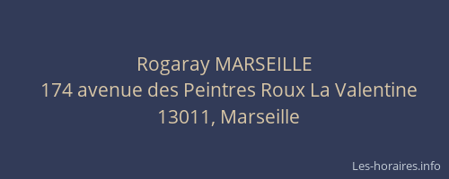 Voici les horaires de Rogaray MARSEILLE situé à Marseille 11ème,