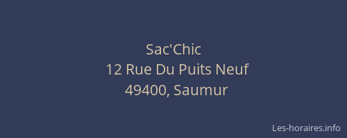 Vous pouvez renseigner les horaires Sac'Chic situé à Saumur,