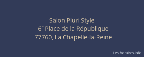 Voici les horaires de Salon Pluri Style situé à La Chapelle-la-Reine,