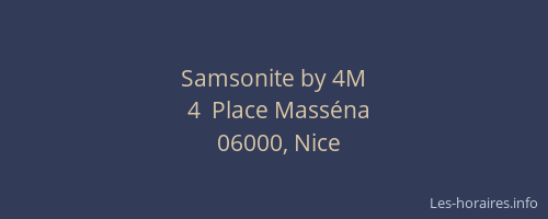 Voici les horaires de Samsonite by 4M situé à Nice,