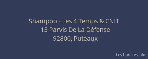 Voici les horaires de Shampoo - Les 4 Temps & CNIT situé à Puteaux,