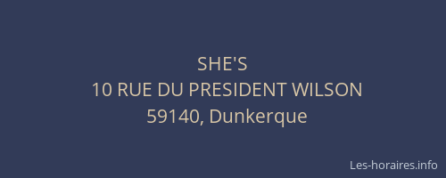 Vous pouvez renseigner les horaires SHE'S situé à Dunkerque,