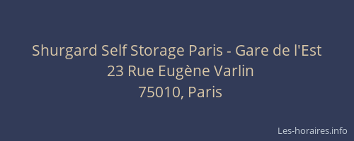 Voici les horaires de Shurgard Self Storage - Gare de l'Est situé à Paris,