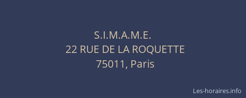 Vous pouvez renseigner les horaires S.I.M.A.M.E. situé à Paris 11ème, vous pouvez trouver les informations de contact, comme sa localisation à 22 RUE DE LA ROQUETTE, ainsi que les coordonnées GPS, lattitude : 48.8540003 et longitude : 2.3710974. Bijouterie, Piscine et Sports voici les 3 principales activités de S.I.M.A.M.E.