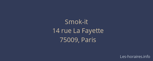 Voici les horaires de Smok-it situé à Paris 9ème,