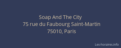 Voici les horaires de Soap And The City situé à Paris 10ème,