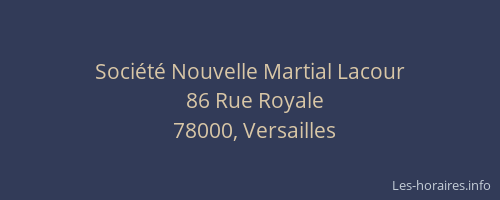 Voici les horaires de Société Nouvelle Martial Lacour situé à Versailles,