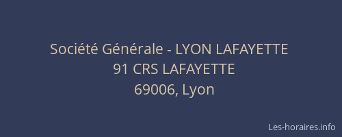 Voici les horaires de Société Générale - LYON LAFAYETTE situé à Lyon,